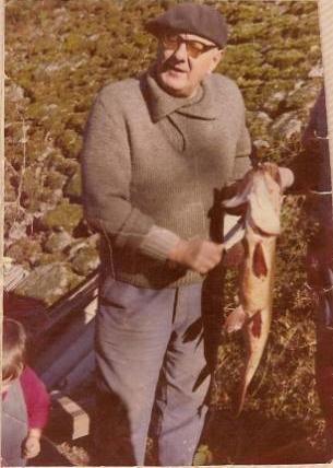 Pierre Périgaud lors de la pêche du 27 octobre 1968 tenant un brochet de 14 livres