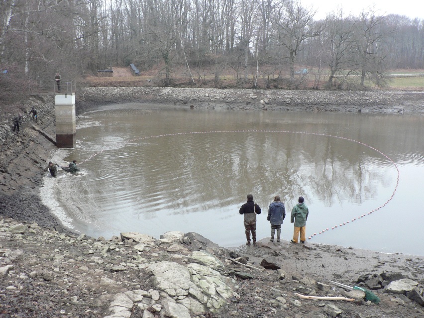 Lors de la vidange de février 2009, a eu lieu la première pêche de La Toueille au filet. C'est Nicolas Boissier, pécheur professionnel (www.les-etangs-creusois.com), qui a réalisé la récupération du poisson.