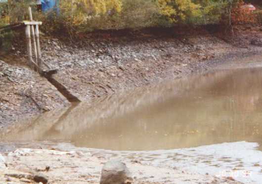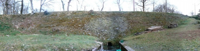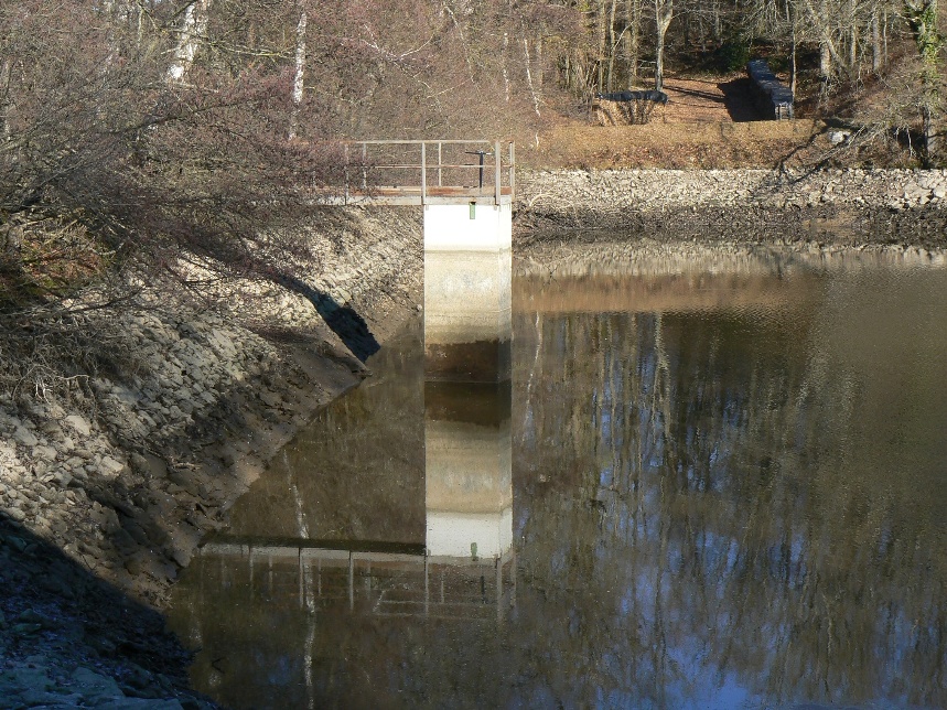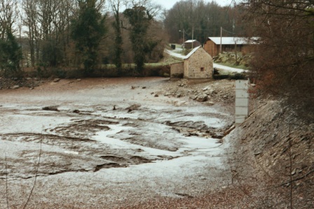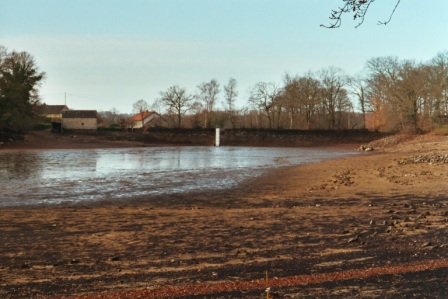 L'étang vide et sa chaussée après le démontage de l'empellage