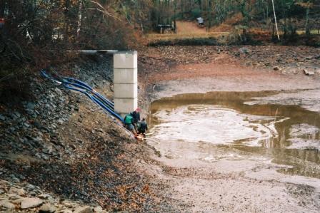 Le 23 décembre 2004, lors d’un essai, 2 pompes et leurs tuyaux se firent aspirées dans le moine. L’ensemble obstruait l’entrée de moine, ralentissant l’évacuation de l’eau qui avait monté de plus de 2 mètres.